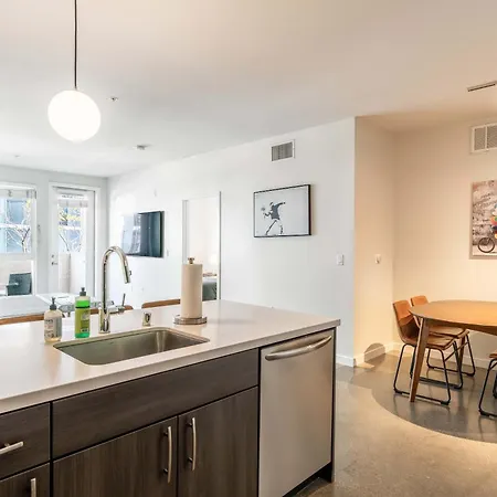 New 2Br Mid Century Apartment biedt gasten toegang tot een patio voorzien van airconditioning, en moderne gemakken zoals breedbandinternet en TV met meerdere kanalen. Deze accommodatie is uitgerust met een badkamer met een haardroger en handdoeken. Bovendien is er ook een badkuip.